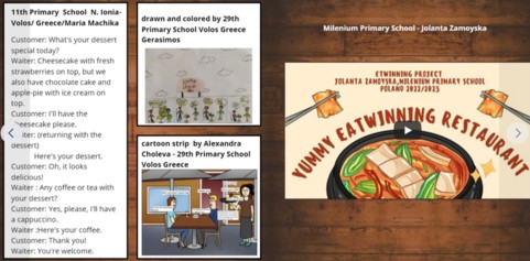 Yummy eaTwinning Restaurant - to projekt, który pomagał rozwijać u uczniów przedsiębiorczość i podnosił świadomość na temat zdrowych nawyków żywieniowych poprzez stworzenie własnej, wymyślonej restauracji. Uczniowie stworzyli nazwę restauracji, logo i zostali pracownikami. Każdego miesiąca na szkolnej stołówce był organizowany dzień tradycyjnej kuchni z innych państw świata.